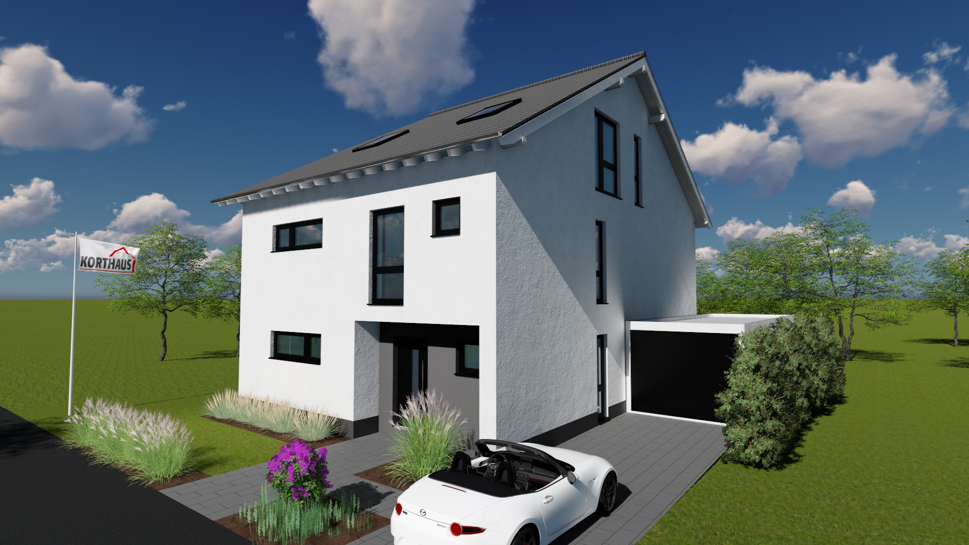 dieses freistehende Einfamilienhaus zeichnet sich durch die lichtdurchfluteten und modernen Räume aus.